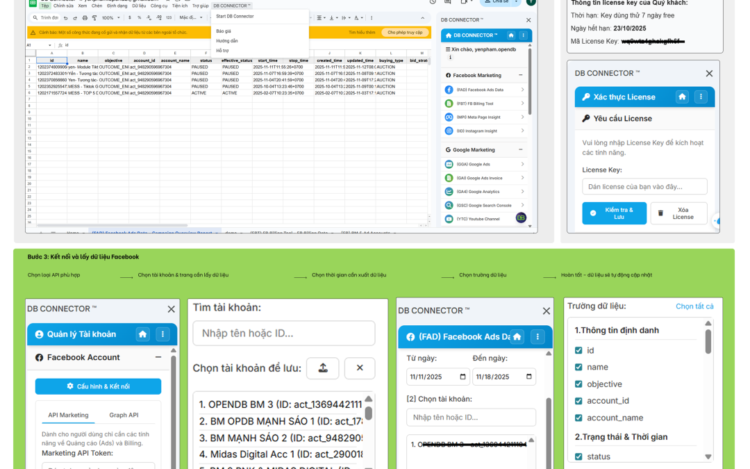 3. Tải dữ liệu Facebook Ads tự động bằng DB Connector (Giải pháp tối ưu)