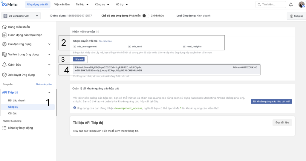 Bước 3: Tạo Token Facebook Ads