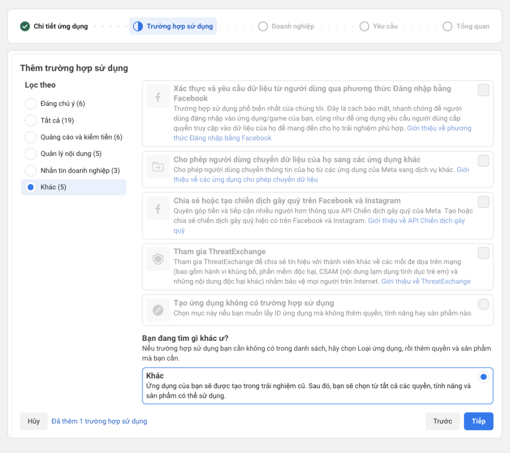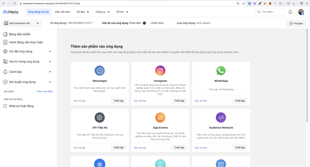 Sau khi tạo ứng dụng thành công, tuỳ theo nhu cầu sử dụng module nào mà người dùng sẽ chọn loại token phù hợp là Marketing API Token hoặc Graph API Token. Dưới đây là hướng dẫn 2 cách tạo API.